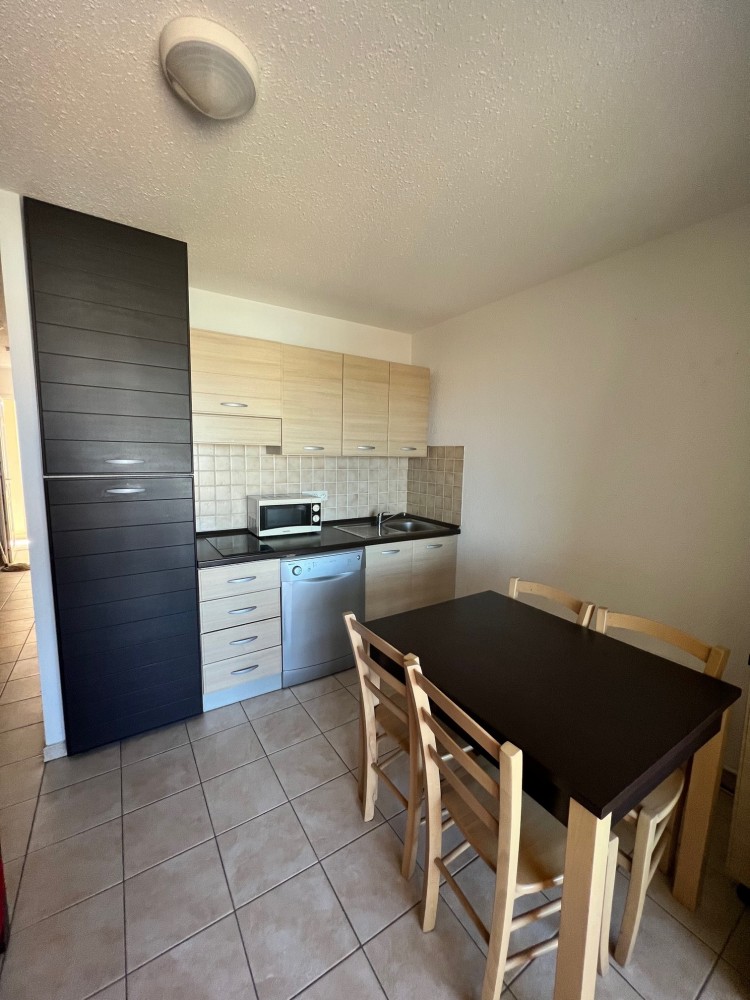 Appartement T2 de 28m² se composant d'un séjour-cuisine américaine équipée, une salle de bains avec wc et une chambre.